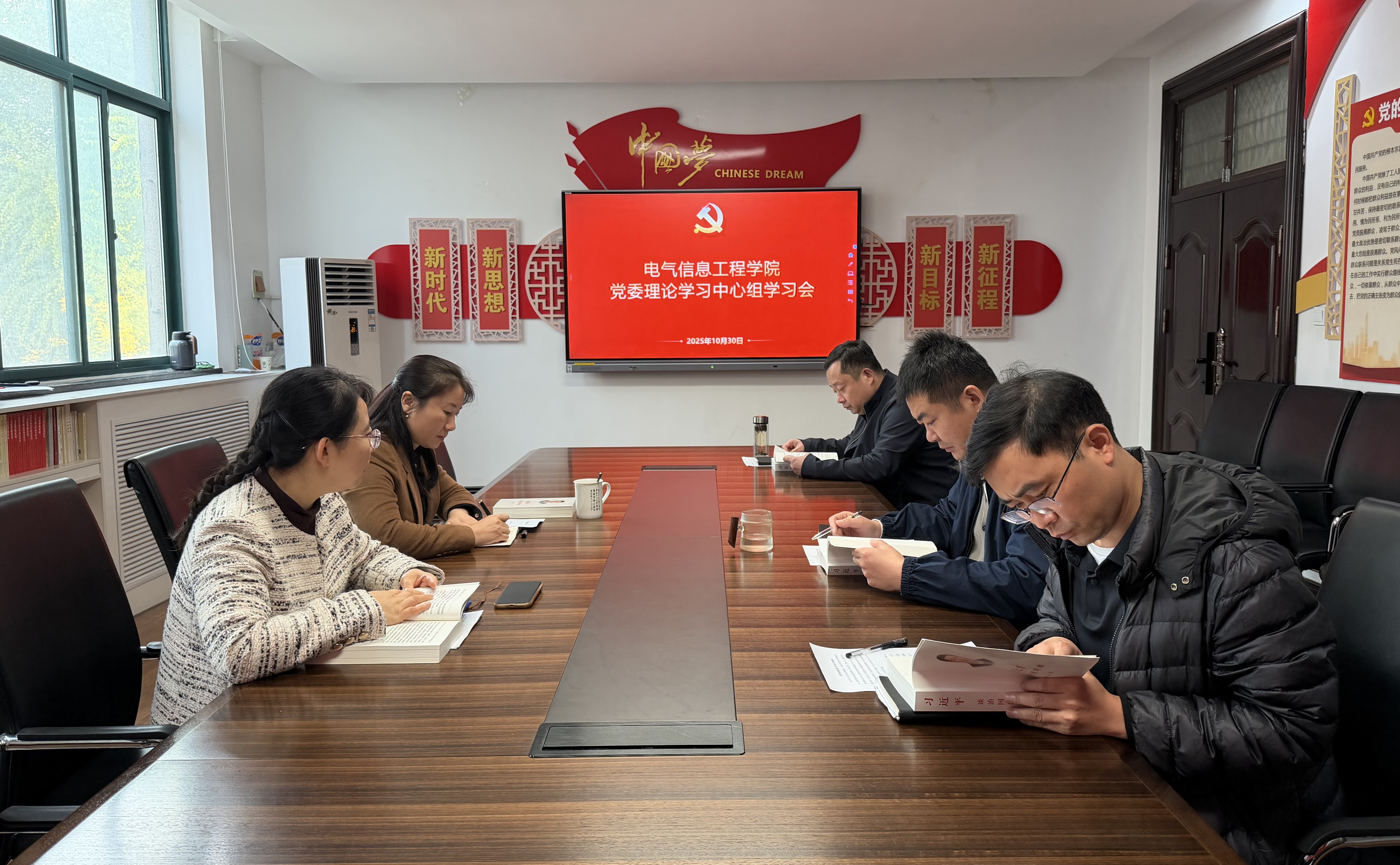 10月30日上午,电气信息工程学院在西二楼202召开党委理论学习中心组学习会。学院党委理论学习中心组成员参加会议,会议由党委书记张辉主持。
