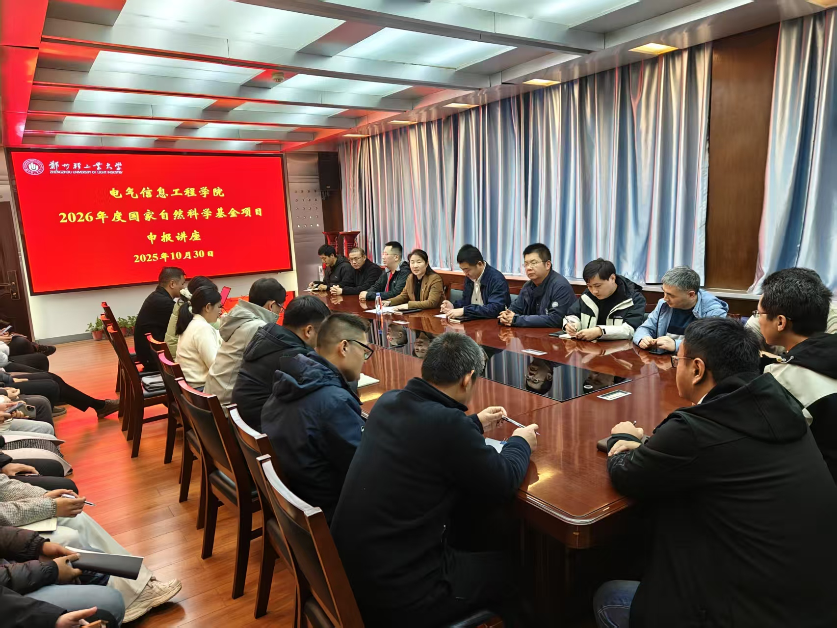 10月30日下午,电气信息工程学院在西二楼301会议室举办2026年度国家自然科学基金申报专题讲座。讲座特邀2025年度青年科学基金获得者刘越智老师与项目申报经验丰富的刘鹏老师作专题分享。