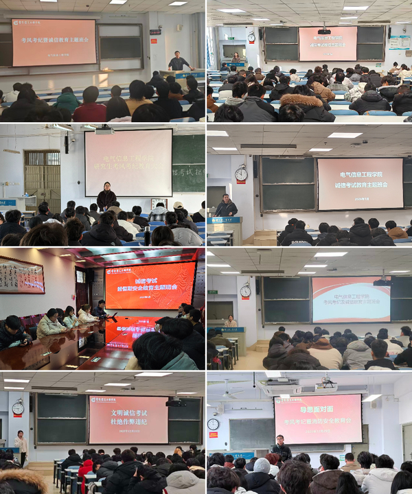 为进一步强化学生诚信考试意识,筑牢学风建设根基,近日,电气信息工程学院以班级为单位,全面开展考风考纪教育主题班会,引导全体学生树立正确的考试观,共同维护公平公正的考试秩序。