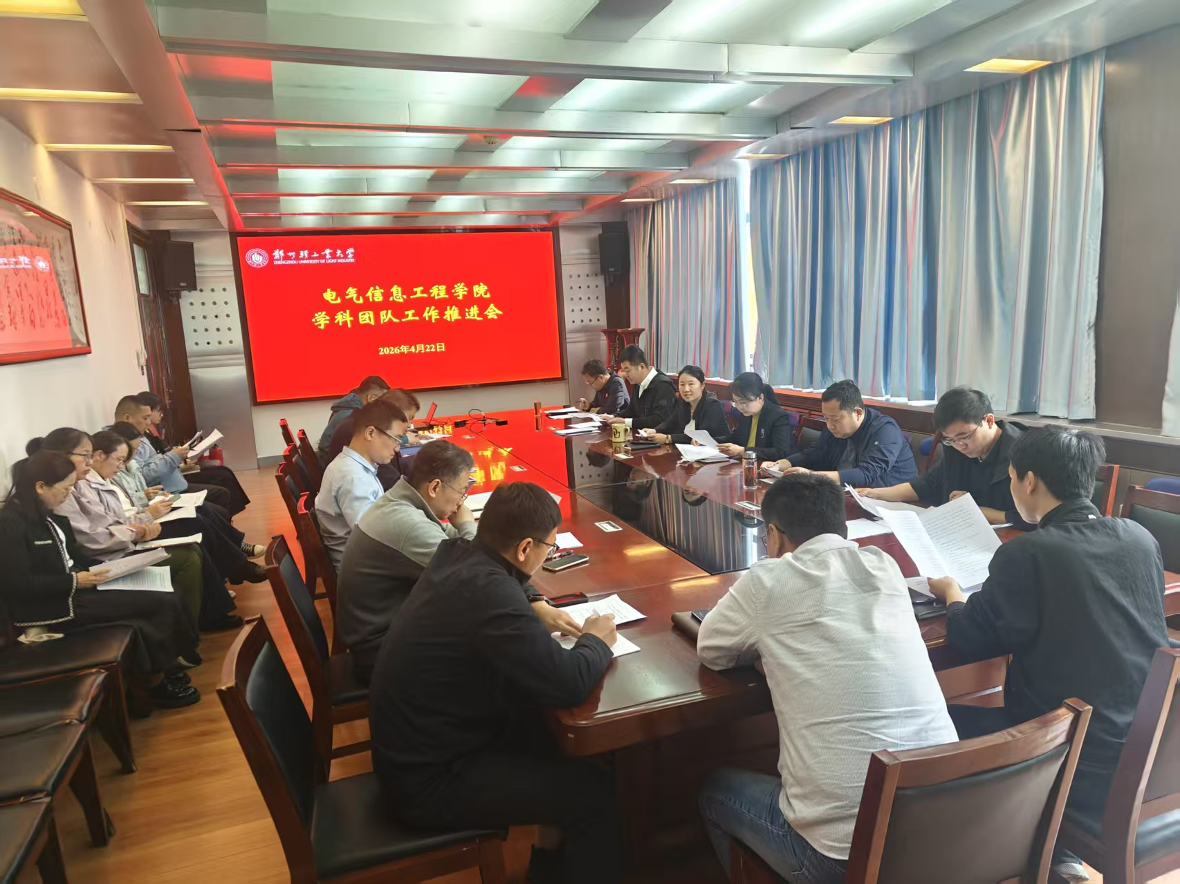 4月22日上午,电气信息工程学院在西二楼301会议室召开学科团队工作推进会。学院班子成员、各团队负责人、各学科负责人及各系主任参加会议。会议由院长和萍主持。