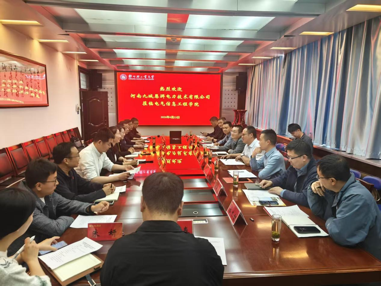 4月23日下午,河南九域恩湃电力技术有限公司一行莅临电气信息工程学院开展校企合作座谈交流。学院班子成员、相关系部负责人及兄弟学院代表参加会议,公司高级专家范鑫、副总师兼人力资源部主任成煜钤及各事业部负责人出席座谈,会议由学院院长和萍主持。